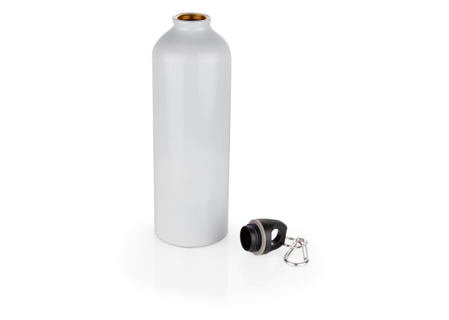 Botella de aluminio con tapa de rosca y gancho carabinero metálico para fácil transporte. Libre de BPA y sustancias nocivas. No retiene ni transmite sabores. Recubrimiento exterior con pintura atóxica. Capacidad 800 ml / 27 Oz. MATERIAL: Aluminio. MEDIDAS: Formato: (Alto X Diámetro): Con Gancho: (31 X Ø 5,1). Con Tapa: (24,5 X Ø 5,1). Sin Tapa: (21,3 X Ø 5,1). Peso: 87 gr. ÁREA DE IMPRESIÓN APROXIMADA: Impresión Digital Rotary: 20 x 14 cm. Láser Rotary: 10 x 11 cm.Serigrafía – Screen: 20 x 8 cm